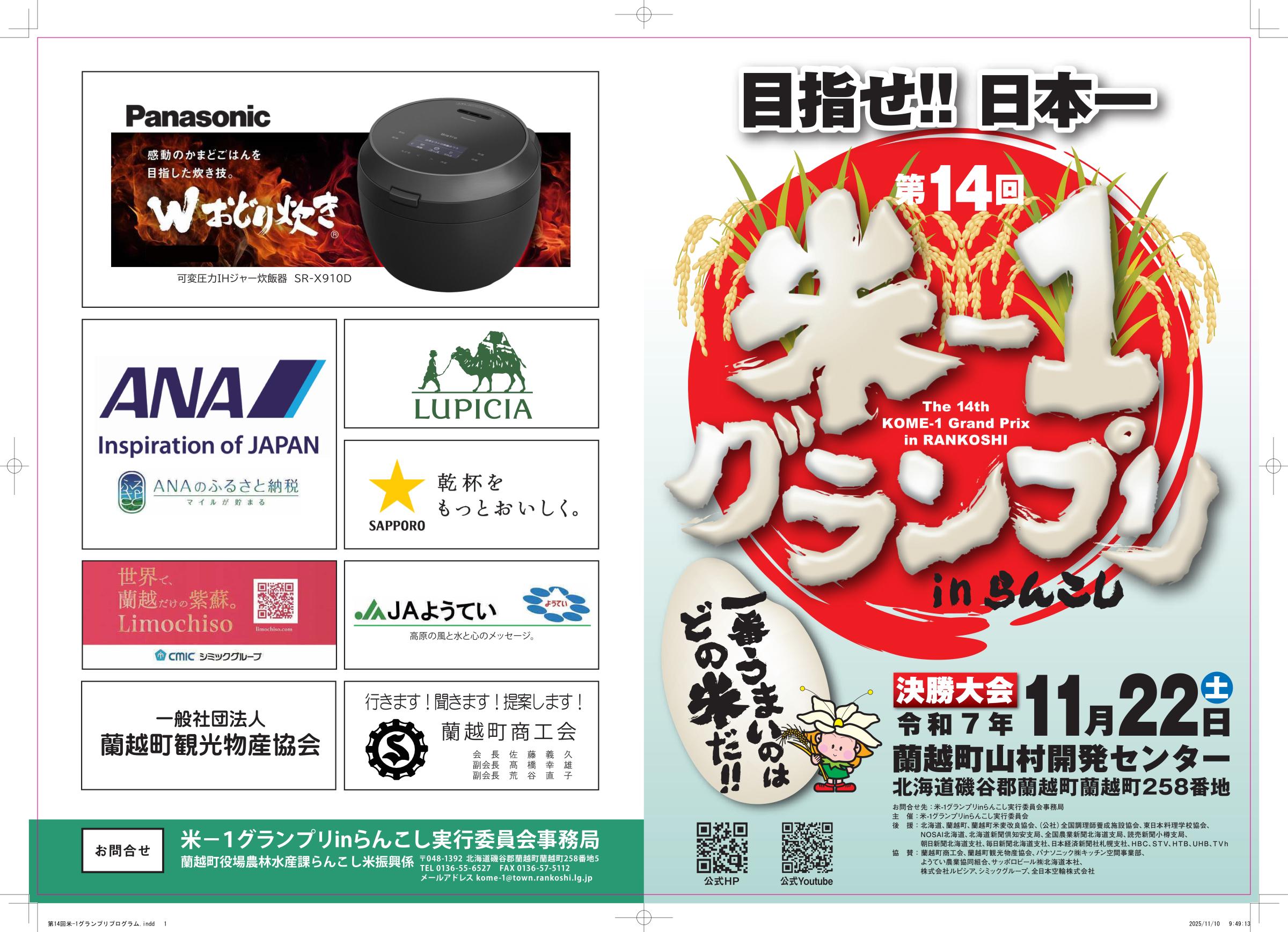いよいよ11月22日(土)、今年で第14回目を迎える「米-1グランプリinらんこし」が、蘭越町山村開発センターを会場に開催されます。美味しいお米日本一を目指し、過去最多となる応募総数415品の中から、予選審査を勝ち抜いた上位30品が、蘭越町に集結します。当日は、豪華景品が当たるイベントなども多数用意し、皆様のご来場を心よりお待ちしております。